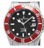 Revue Thommen was founded in 1853 by Gedeon Thommen and has developed into one of the leading Swiss watch companies with products in the aviation industry. This stainless steel timepiece features a red unidirectional rotating bezel and black dial.