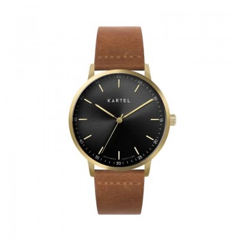 The dial design features a Kartel logo, simple hour markers and discreet numerals in 5 minute increments.