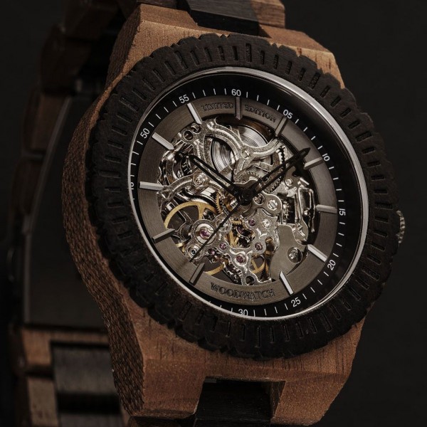 Our Limited Edition AUTOMATIC Urban Navigator features a 21 jewel self-winding automatic mechanical movement with a 36 hours power reserve. The open heart (see-through) dial has a sapphire coated glass on top and a backplate that is engraved with a unique number for each watch (1 - 100). The watch is automatically charged on the go by kinetic energy of your wrist, meaning no battery is needed to charge the watch. The AUTOMATIC Urban Navigator is made from North American Walnut Wood and East African Ebony Wood with matte black details.