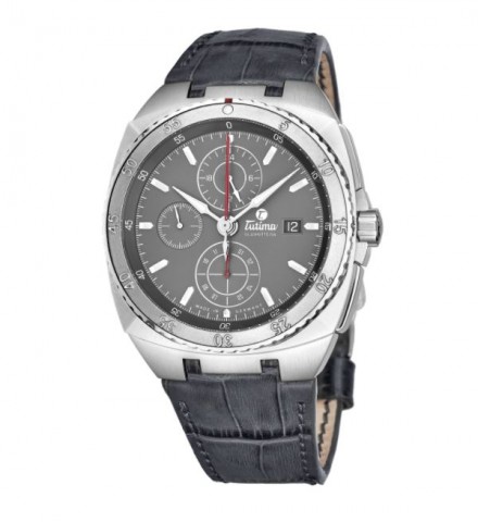Tutima Men's 6422-22 'Saxon One' Grey Dial Grey Leather Strap Chronograph German Mechanical Automatic Watch